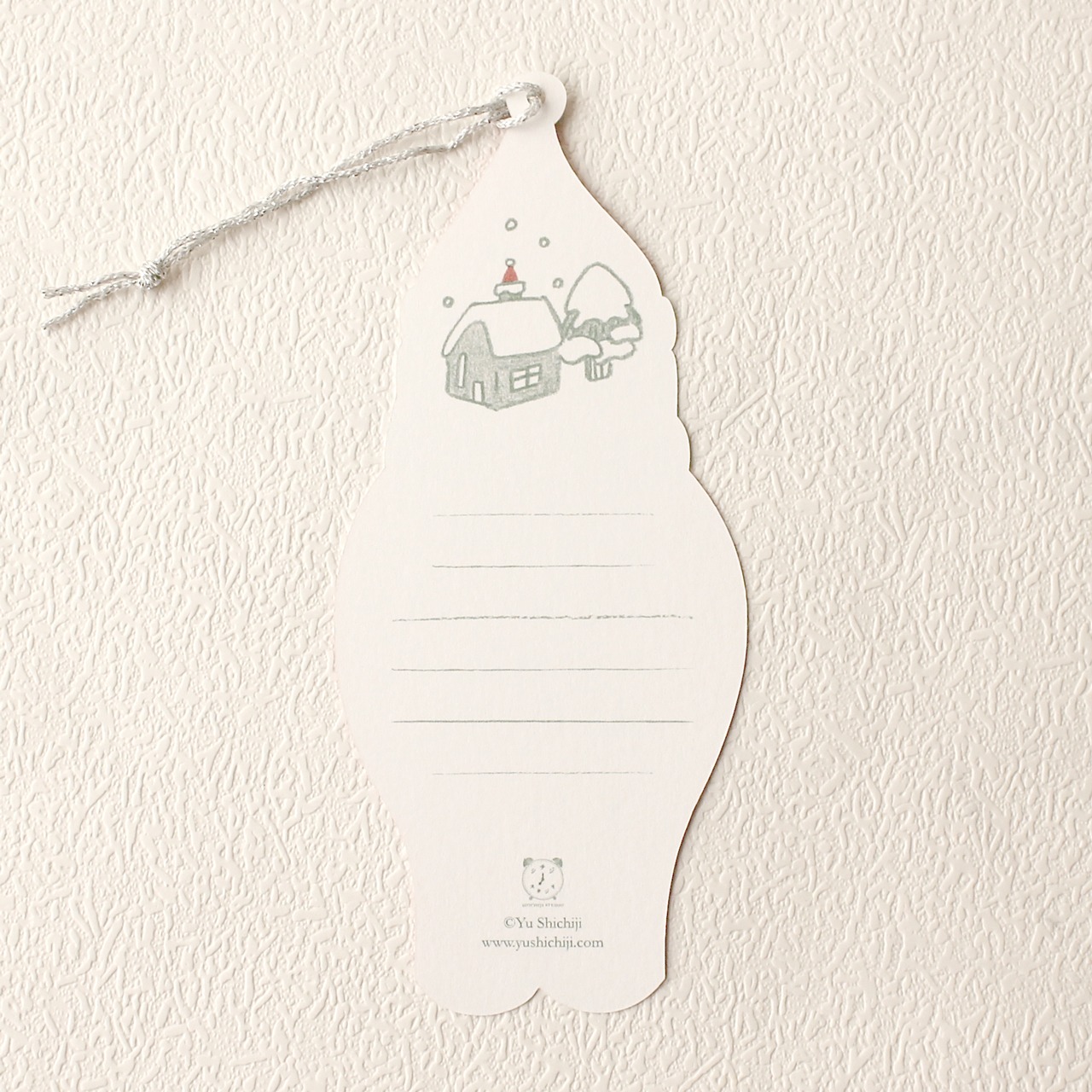 とぼけた表情がチャーミングなサンタクロースのクリスマスカードです。オーナメント風にぶら下げて飾ったり、本のしおりに使ったりと、クリスマスカードとして送った後にも楽しめるカードです。裏側にメッセージを書くことができます。